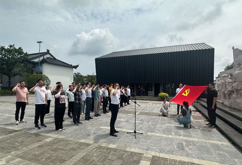 踏上青石板,重走烽火路,黨員、中高管仿佛置身當(dāng)年烽火硝煙的戰(zhàn)場,聆聽著陳毅、栗裕、江渭清、王必成、葉飛、鐘國楚等將士的光輝事跡,一張張黑白照片、一段段文獻(xiàn)資料,一幅幅場影都“活”了起來,一個(gè)個(gè)英雄人物英勇的故事讓大家心潮澎湃,革命先烈們舍生取義的品格、艱苦卓絕的斗爭、堅(jiān)韌不拔的毅力讓大家深深感動(dòng)。在初心廣場上,黨員們面向革命烈士雕像,共同重溫了入黨誓詞。