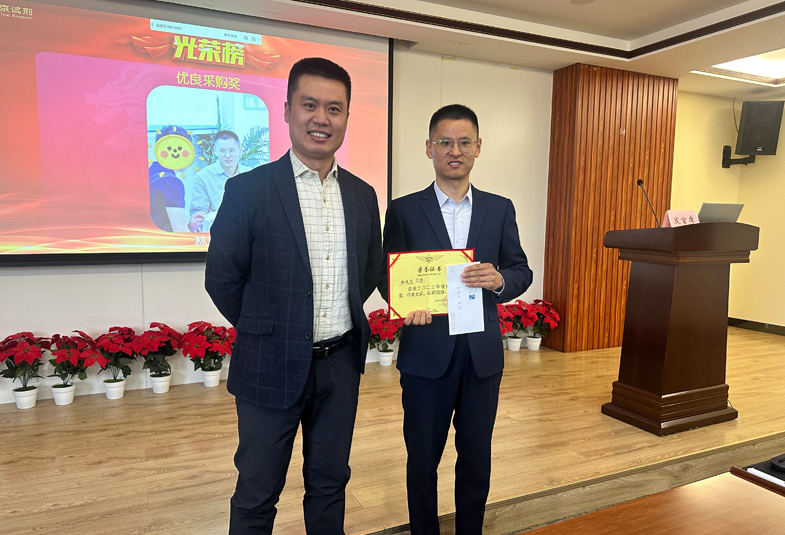 會(huì)議揭曉了上一年度“貓頭鷹計(jì)劃”,分別由田蜜、吳琦、宋立巖三位同事獲得,隨后會(huì)議頒發(fā)了2023年度顧客服務(wù)、營銷創(chuàng)新、藥輔推廣、售后服務(wù)、優(yōu)良采購及銷售精英獎(jiǎng),彭軍等11位同志分獲各項(xiàng)榮譽(yù)。